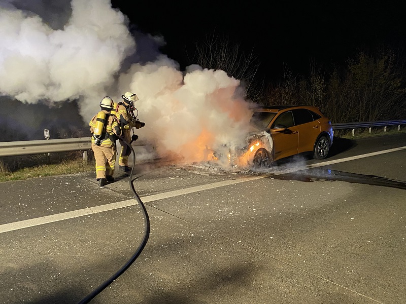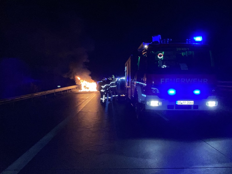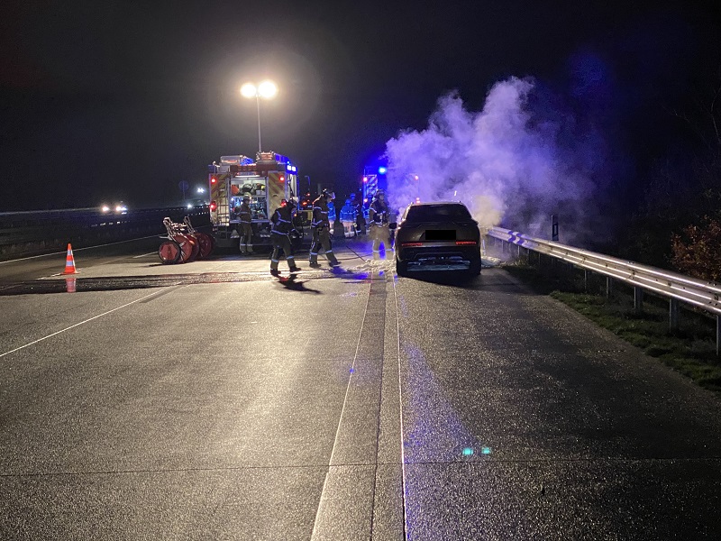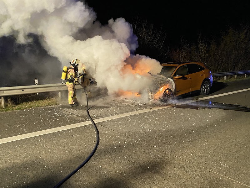 Kurz hinter der Raststätte Trave wurde ein brennender PKW gemeldet. Am Einsatzort stellten wir einen PKW in Vollbrand fest. Der PKW wurde unter Atemschutz mittels S-Rohr und Mehrbereichsschaum abgelöscht und im Anschluss mit der Wärmebildkamera kontrolliert. Die Einsatzstelle wurde der Polizei übergeben.
