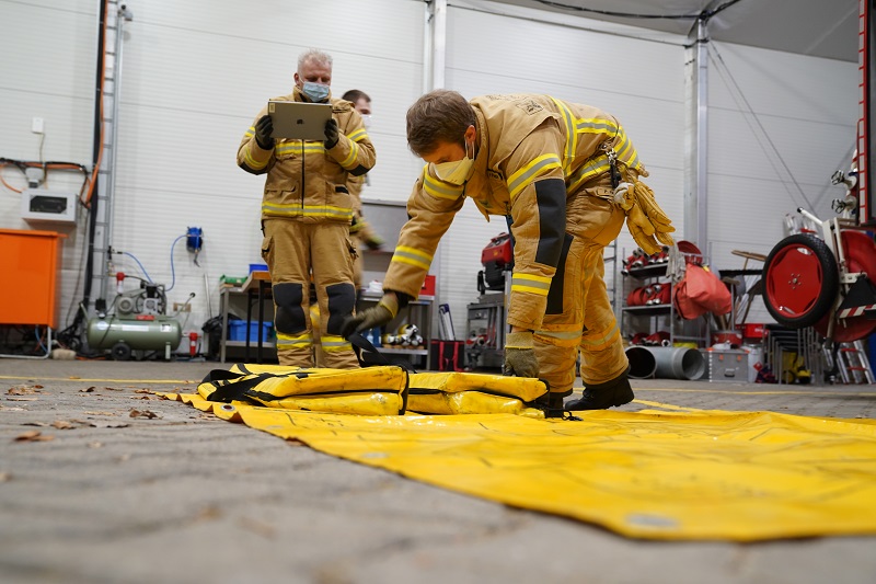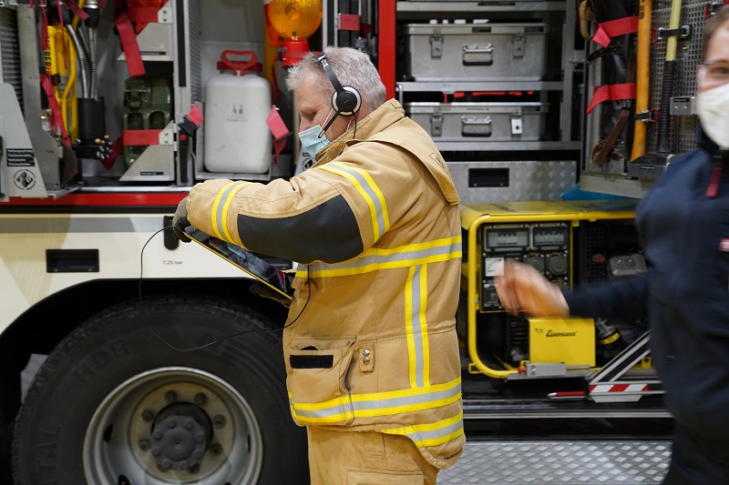 Im Ergebnis fand sich in der Fahrzeughalle ein „Unfall-PKW“, Dozenten und Kameramann. Neben einer allgemeinen und spezifischen Fahrzeug- und Gerätekunde, wurde im Dialog mit den über 20 Teilnehmern die Standardeinsatzregel „Technische Hilfeleistung“ ins Gedächtnis gerufen. In Zusammenarbeit mit den Teilnehmern wurde durch die Dozenten ein Dummy aus dem Fahrzeug gerettet.
