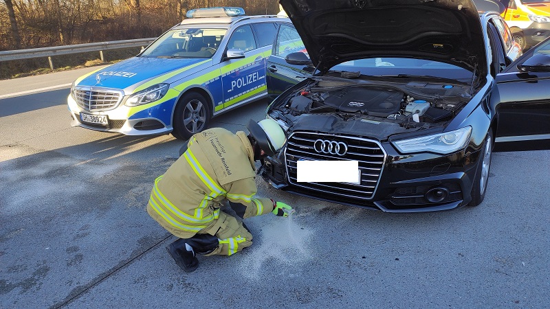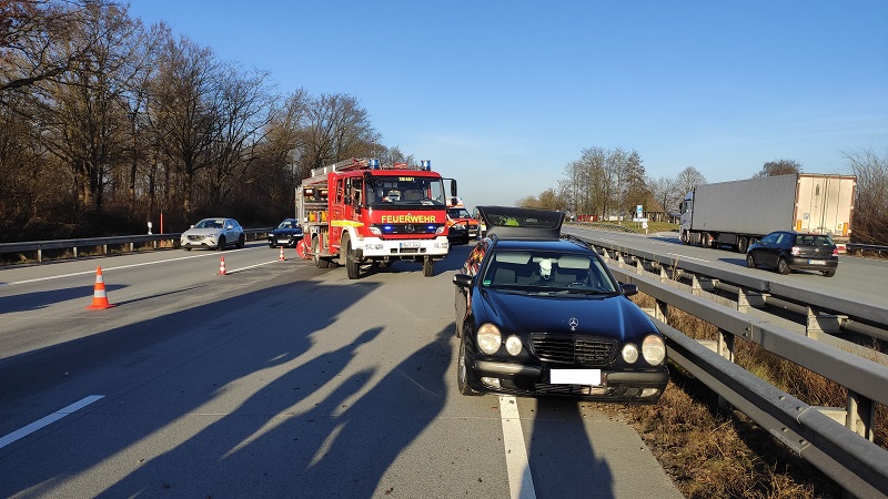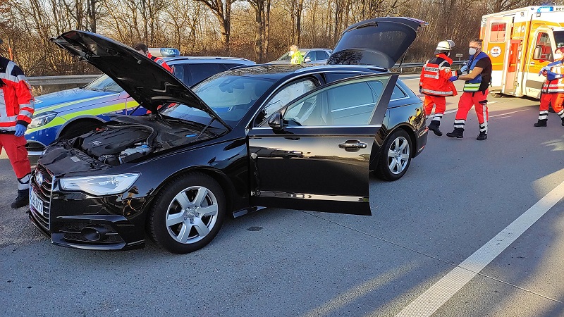 Auf unserem Rückweg von Einsatz #010 ereignete sich auf der Autobahn in Fahrtrichtung Hamburg ein Unfall mit zwei beteiligten PKW, bei dem zwei Insassen leicht verletzt wurden. Wir sicherten die Einsatzstelle, unterstützten den Rettungsdienst, haben auslaufende Betriebsstoffe abgebunden und die PKW stromlos geschaltet.