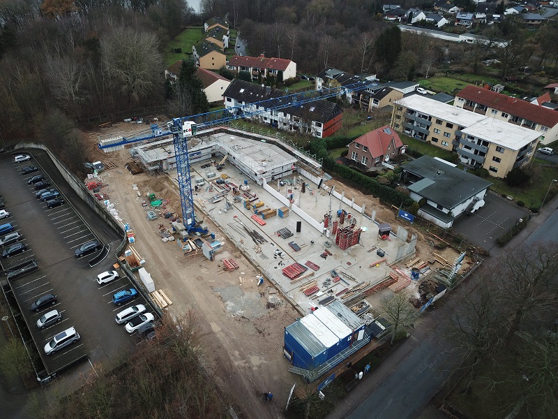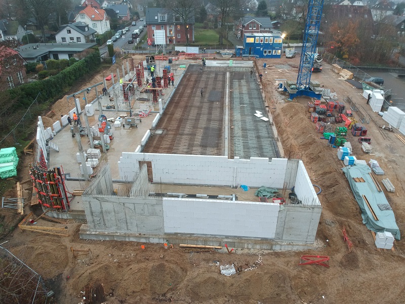 Es geht hoch hinaus – unser Erdgeschoss steht! Für jeden ist von außen sichtbar: Unsere Baustelle in der Ahrensböker Straße wächst in die Höhe.