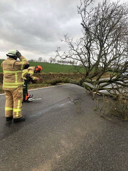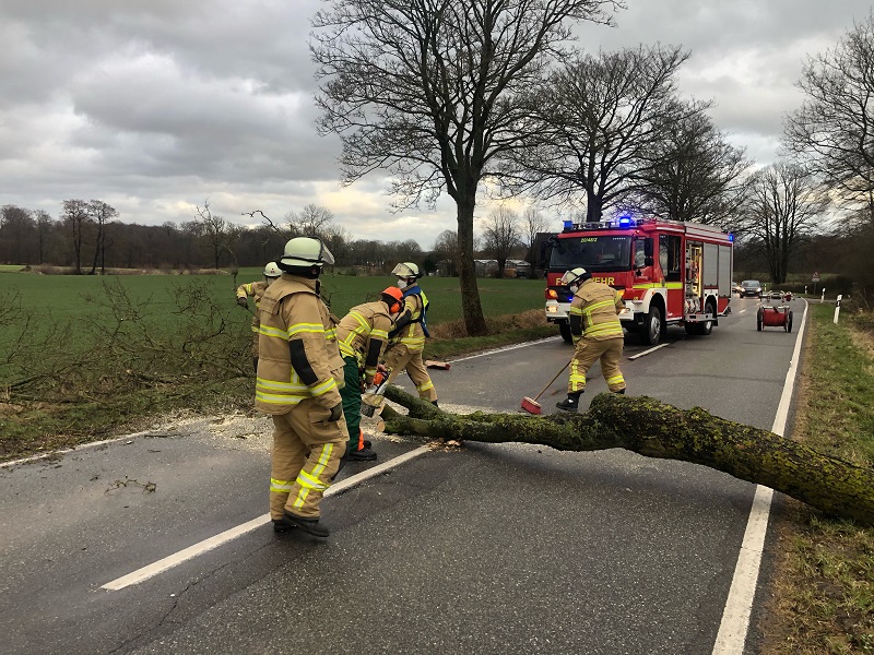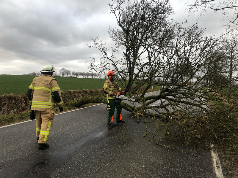 Aufgrund der böigen Winde stürzte ein Baum auf die Straße. Wir zerkleinerten den Baum mittels Kettensägen und räumten dIe Straße.