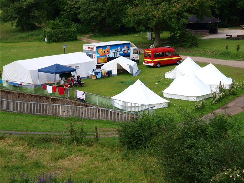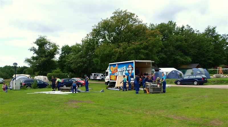 Bereits am vorangegangenen Freitag haben wir den LKW beladen und alles soweit vorbereitet, um Samstag gegen 02:30 Uhr starten zu können. Um ca. 11:00 Uhr trafen wir auf dem Campingplatz "Eifelcamp" ein. Bis auf den Zeltaufbau lag an diesem Tag nichts weiter an.