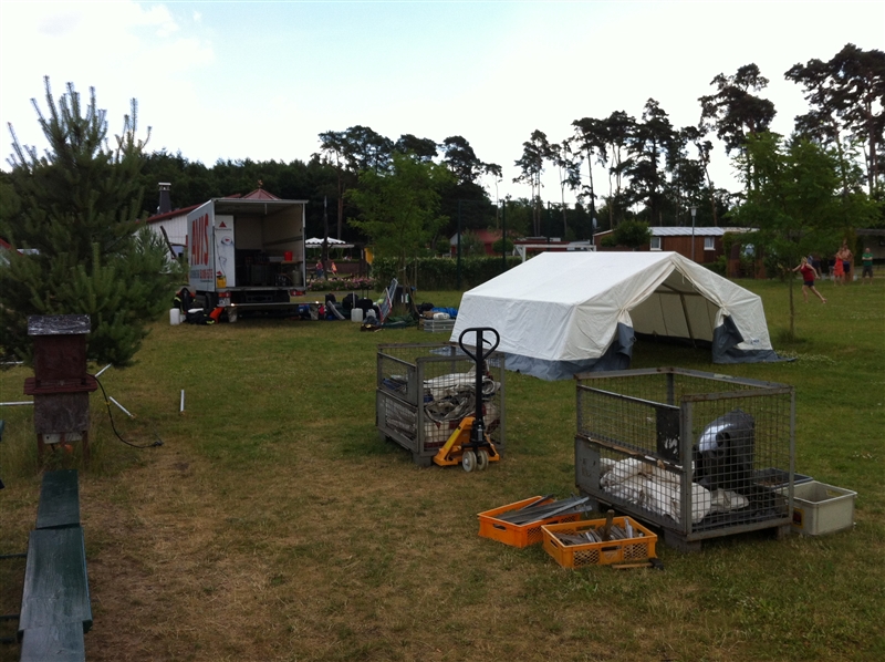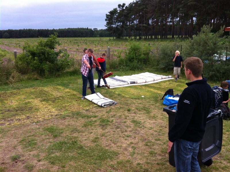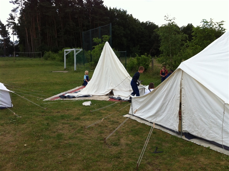 Die erste Woche der Sommerferien bedeutet Spiel, Spaß und Abwechslung, denn auch in diesem Jahr fuhren wir mit insgesamt 22 Personen, darunter sechs Betreuer, ins Sommerzeltlager. Dieses Mal schlugen wir unsere Zelte auf dem Gelände des Campingparks "Buntspecht" auf, der direkt am Ferchesarer See, westlich von Berlin und mitten im Havelland liegt. In der Woche haben wir bei den unterschiedlichsten Aktivitäten viel Spaß gehabt, wo der Filmpark Babelsberg und das Baden im nahegelegenen See zu nennen sind. Interessant wurde es bei der Stadtführung durch Berlin entlang der ehemaligen innerdeutschen Grenze, sowie beim Besuch der Berufsfeuerwehr Berlin-Neukölln und der Freiwilligen Feuerwehr Rathenow. Am Freitag besuchten die "Älteren" von uns die KZ-Gedenkstätte Sachsenhausen, während die Jüngeren das gute Wetter mit leckerem Eis am Badesee verbrachten. Auch kulinarisch gab es nichts auszusetzen; von Gyros über Spaghetti und Grillen bis hin zu Kartoffelsalat mit Würstchen war alles dabei.