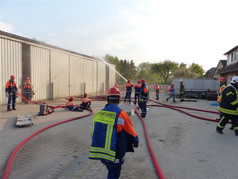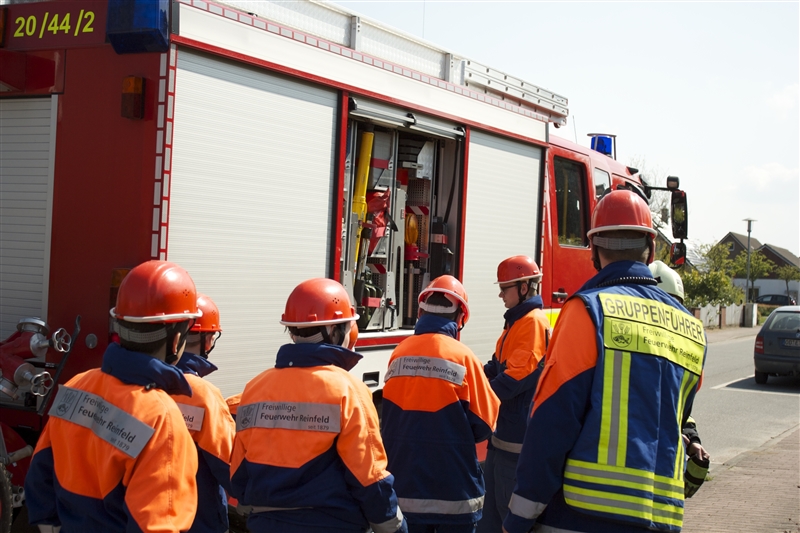 Wenn es am Rettungszentrum von Kindern und Jugendlichen wimmelt, alle paar Minuten der Alarmgong ertönt und Löschfahrzeuge den Hof verlassen, dann ist Berufsfeuerwehr-Rollenspiel bei der Jugendfeuerwehr Reinfeld!