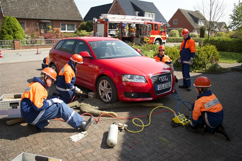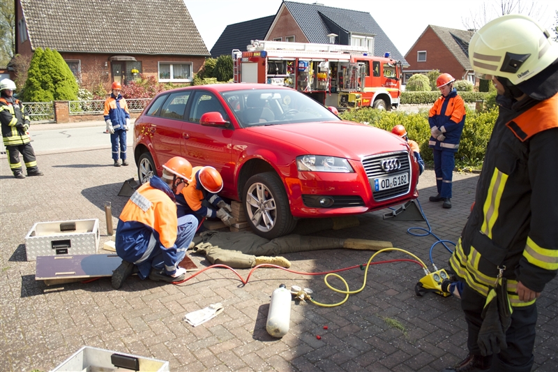 Es folgte ein Einsatz, bei dem eine Person unter einem Auto eingeklemmt war. Da in den Übungen zuvor das Vorgehen bei einem solchen Szenario schon geübt worden war, konnte die Person schnell gerettet werden.