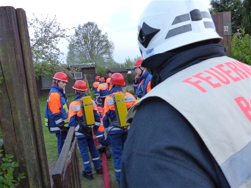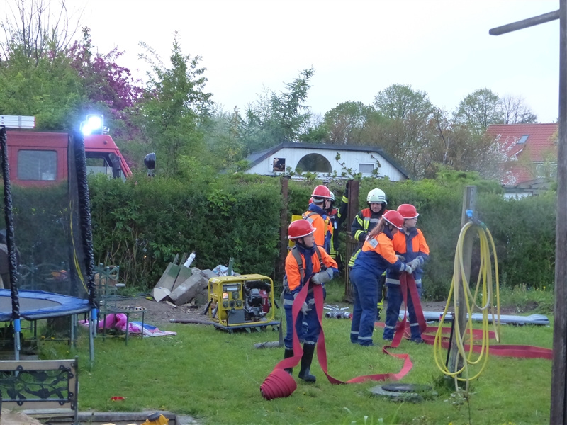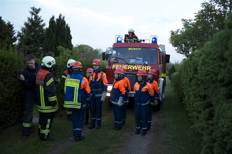 Keine halbe Stunde später ertönte der Alarm erneut: Feuer Groß – Menschenleben in Gefahr! Der Puls der Jugendfeuerwehrleute stieg schon während der Anfahrt. Am Einsatzort angekommen wurde schnell die Jugendfeuerwehr Badendorf nachgefordert, mit deren Hilfe das Feuer in der Maschinenhalle des Bauernhofes Dölger schließlich gelöscht und alle Personen gerettet werden konnten. Im Anschluss luden wir die Badendorfer zu leckerem Kuchen zu uns an die Wache ein. Später wurden wir noch einmal zu einem „Feuer Groß – Menschenleben in Gefahr“ alarmiert, dieses Mal allerdings auf den Bauhof, bei dem die Wärmebildkamera einem Opfer des Feuers das Leben rettete.