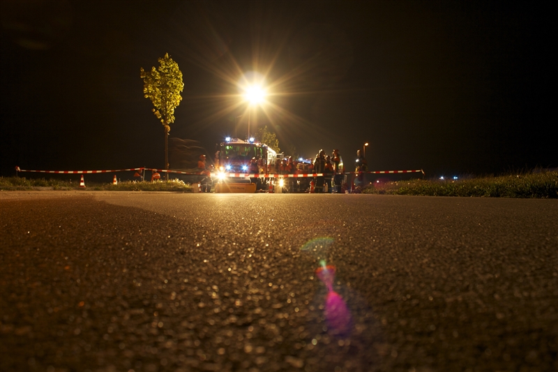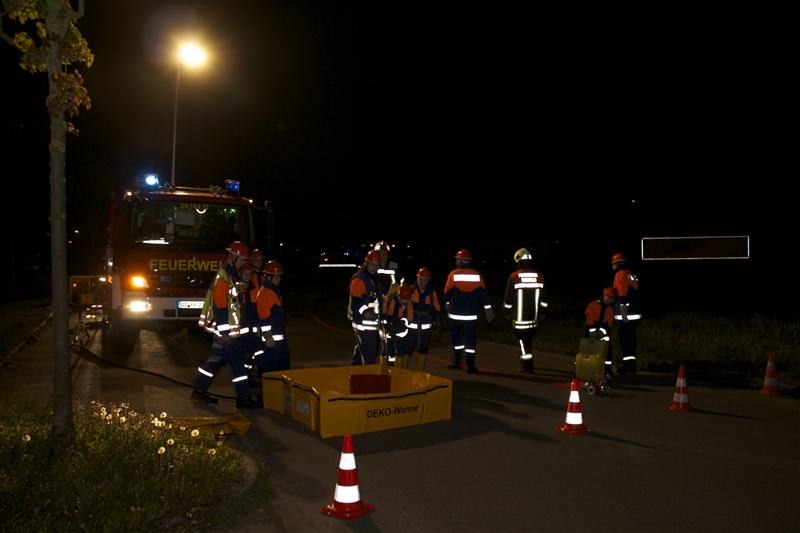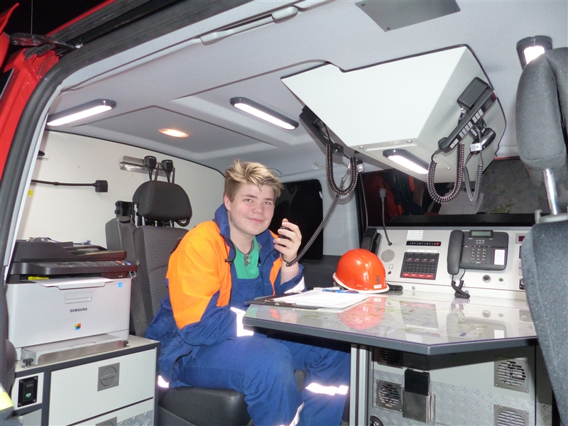 Zum Abendbrot gab es Pizza, die fast restlos verputzt wurde. Der Abschlusseinsatz des Tages führte uns in das Gewerbegebiet an der Autobahn, bei dem ein Transporter eine unbekannte Flüssigkeit verlor – Gefahrguteinsatz! Aber auch dieser letzte Einsatz konnte erfolgreich beendet werden.