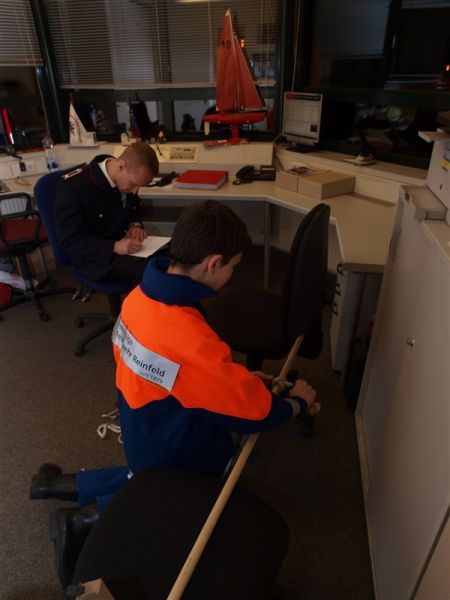 Für die 2. Gruppe der Jugendfeuerwehr Reinfeld wurde es an diesem Freitag ernst. Die Abnahme der Jugendflamme Stufe 1 stand auf dem Dienstplan. Es galt, das in den vorangegangenen Wochen Erlernte unter "Prüfungsbedingungen" wiederzugeben und anzuwenden. Konkret ging es darum, einen C-Druckschlauch auszurollen und zu kuppeln, vier Feuerwehrknoten zu binden und einen Notruf korrekt abzusetzen. Zudem mussten die Jugendlichen die Funktionsweise und Handhabung eines Strahlrohres, eines Verteilers und eines Feuerlöschers erklären. Am Ende der Abnahme konnte unser Jugendwart allen Teilnehmern eine Urkunde und die begehrte Anstecknadel überreichen.