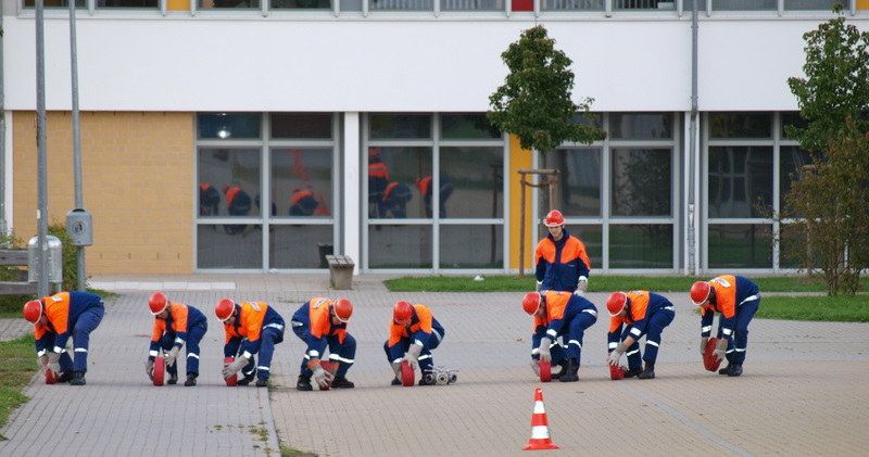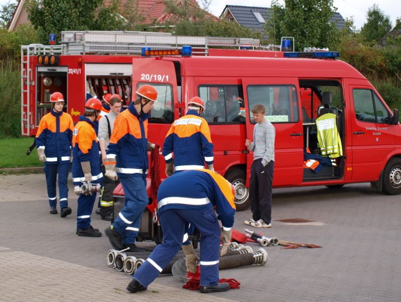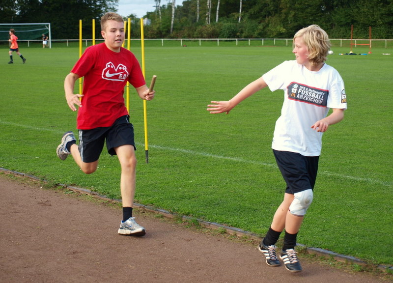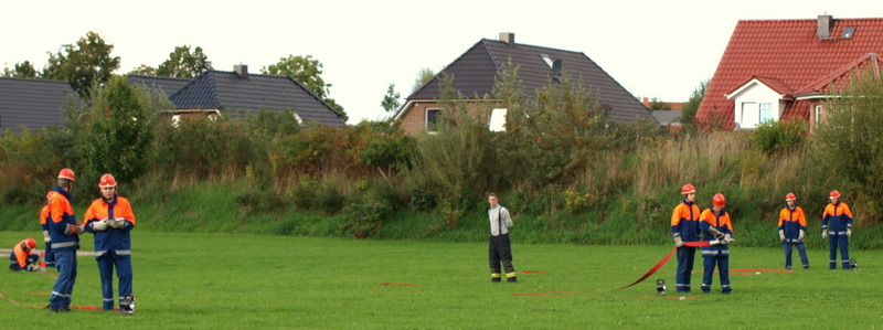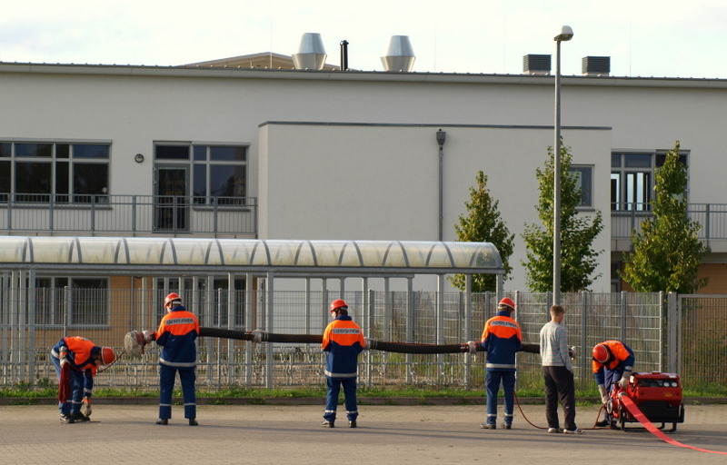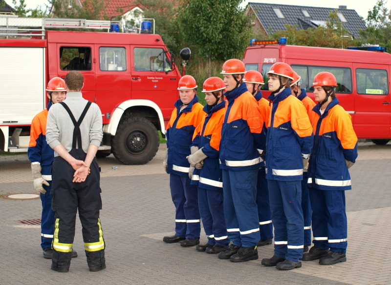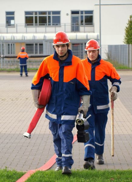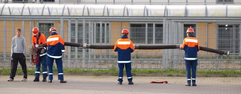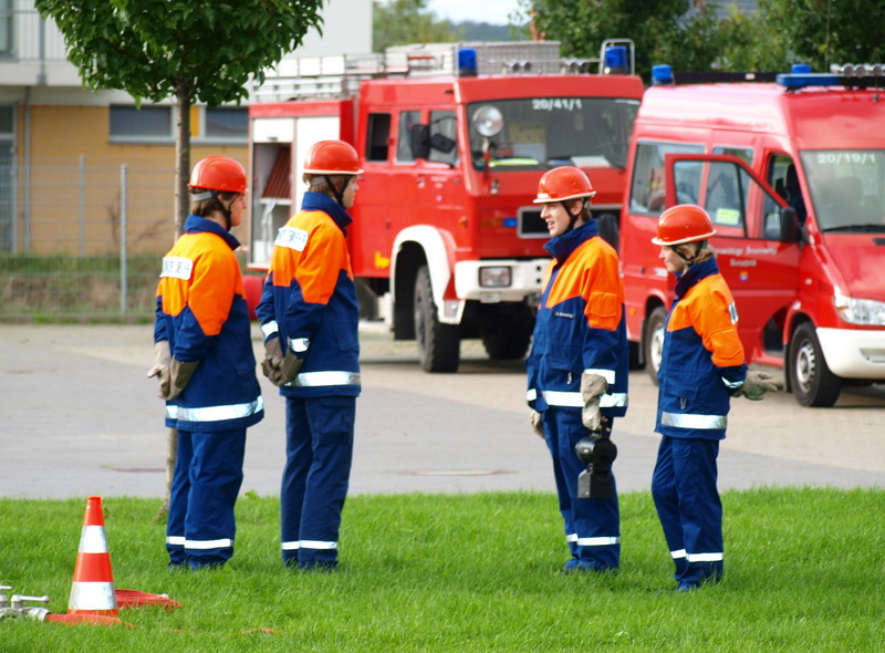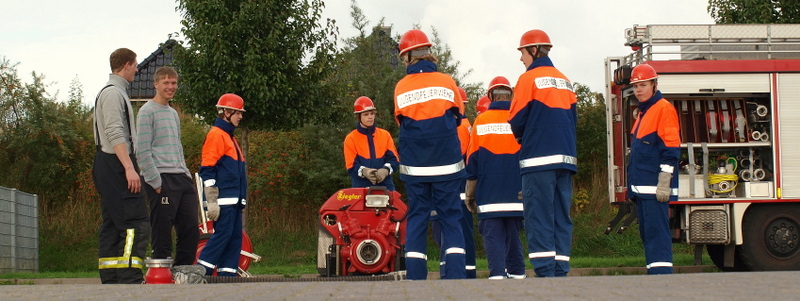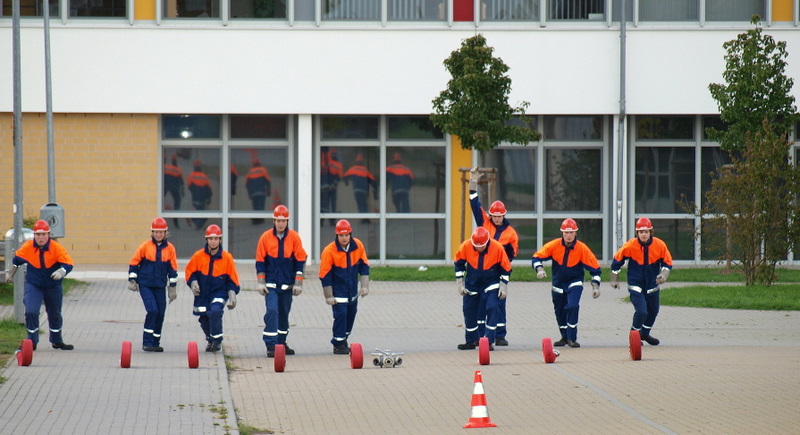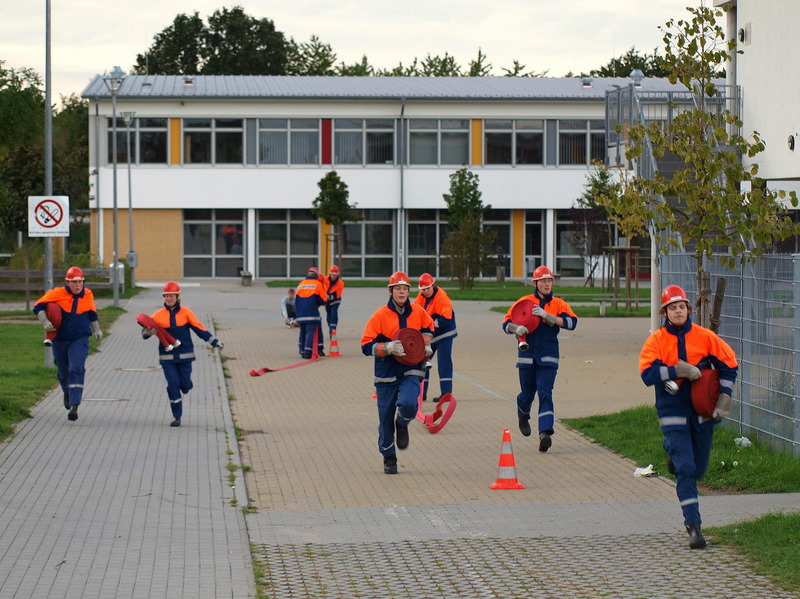 Am Montag, den 13.09.10, trafen sich unsere Mitglieder der 1. Gruppe, welche am kommenden Samstag zur Abnahme der Leistungsspange antreten werden, zur Generalprobe. Die neun Jungs und Mädels haben mit dem sportlichen Teil begonnen, der aus 1500m Staffellauf und Kugelstoßen besteht. Anschließend ging es am Schulzentrum an den feuerwehrtechnischen Teil. Also: Daumen drücken, dass sie es am Samstag schaffen!