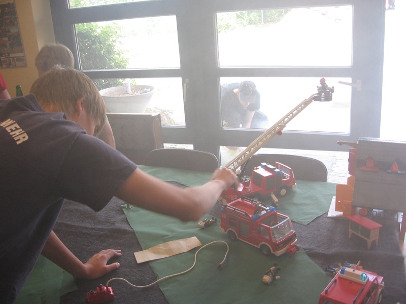 Zum Spielen hatten die Jugendlichen am heutigen Jugendfeuerwehr-Projekttag eine ganze Menge. Im großen Stil brachten sie ihr Playmobil mit, um damit eine Foto-Story für die Website zu erstellen. Das Ergebnis könnt ihr hier genau unter die Lupe nehmen.