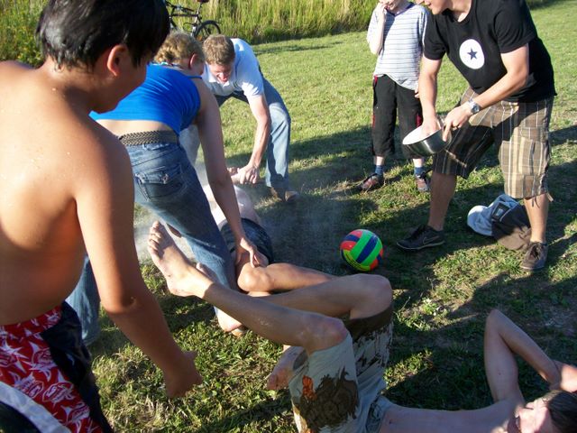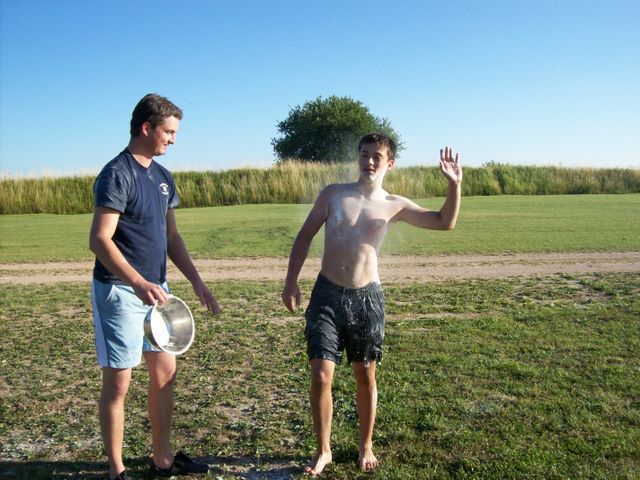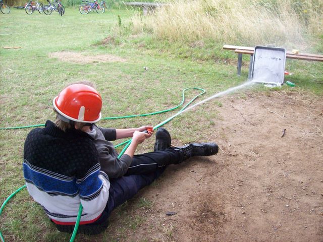 Tag 7: Am Nachmittag fuhren wir eine gemeinsame Übung mit der Jugendfeuerwehr Neubukow. Aufgrund des guten Wetters kam es schonmal vor, dass nicht nur das "Feuer" Ziel des Wasserstrahls wurden. Am Abend wurden wir von einer Gruppe von Jugendfeuerwehren, die ebenfalls auf unserem Zeltplatz waren, zu einer Nachtwanderung eingeladen, die für einige erst um 2 Uhr endete.