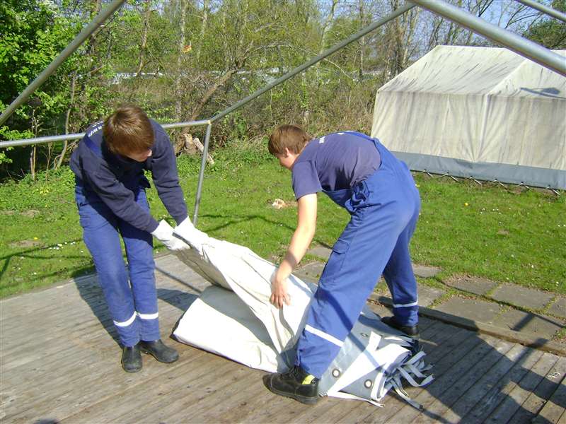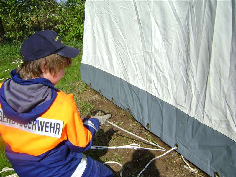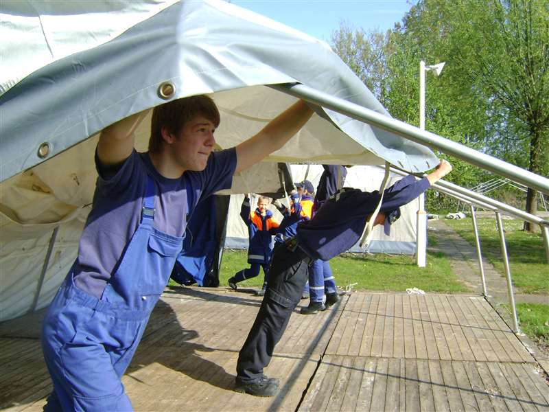 Die Jugendfeuerwehr Reinfeld half bei strahlendem Sonnenschein zusammen mit weiteren Wehren des Kreises beim Zeltaufbau auf dem Platz der Jugendherberge Scharbeutz. Schon seit vielen Jahren findet hier über das Himmelfahrt-Wochenende das Zeltlager der Stormarner Jugendfeuerwehren mit rund 600 Jugendlichen statt.