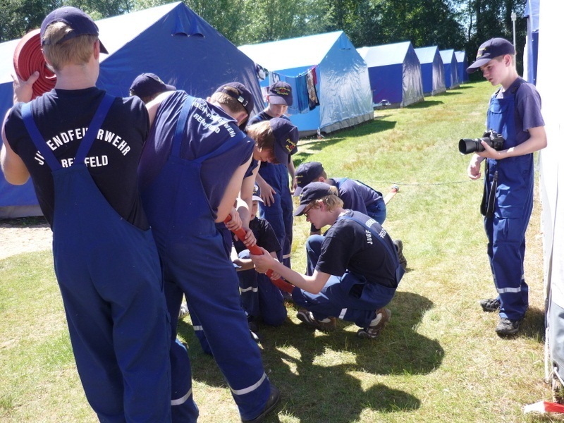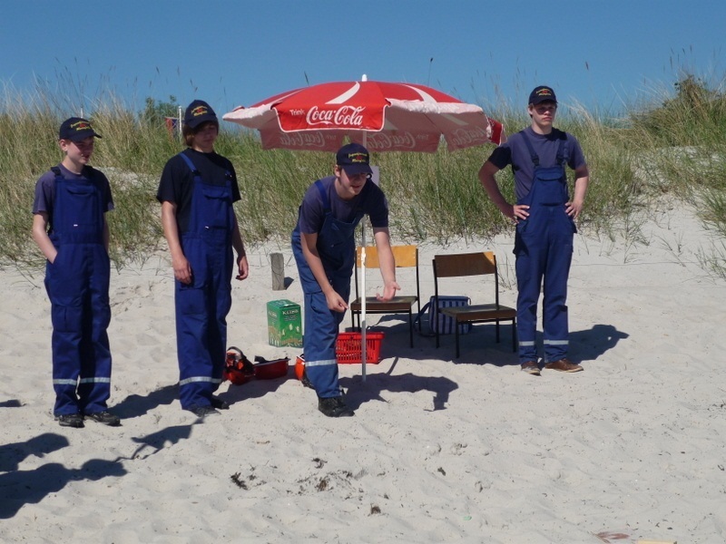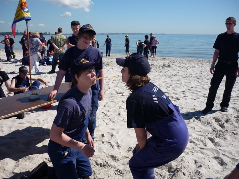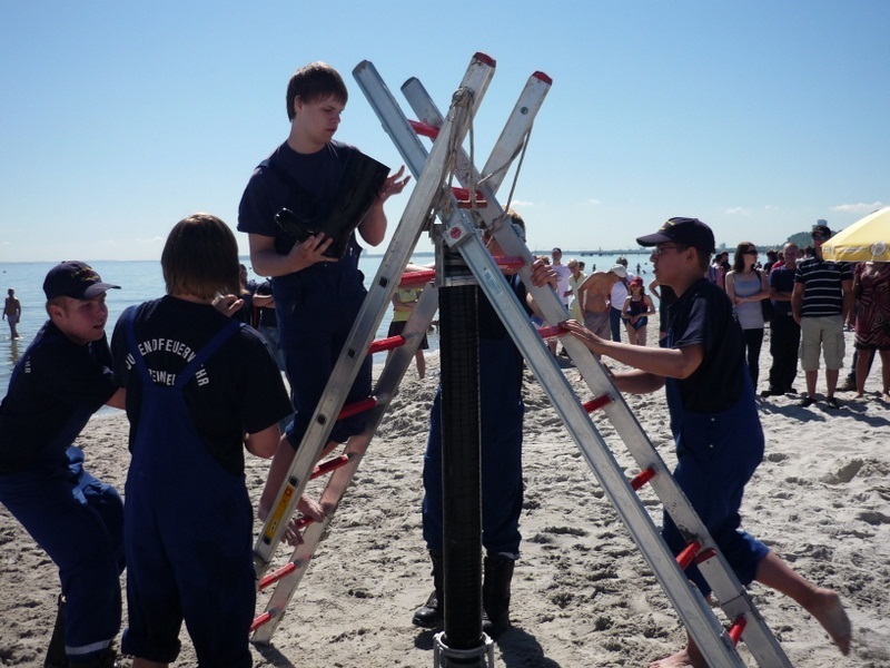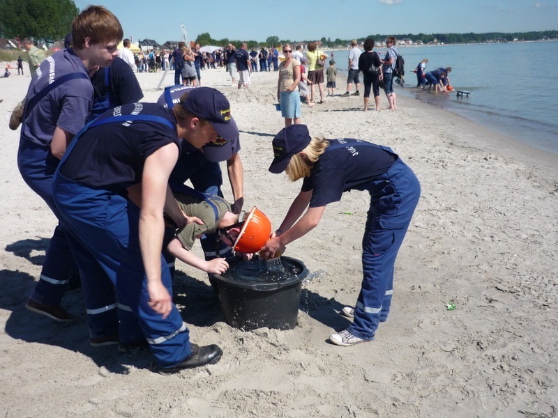 Im Anschluss an die Begrüßung des Jugendfeuerwehrwartes und Eröffnung des Zeltlagers wurde der Beste im Schlauchbootrennen, Sandburgenbauen und Volleyballspielen ermittelt. Um kurz vor zehn Uhr abends ging es los zum Orientierungsmarsch rund um Scharbeutz.